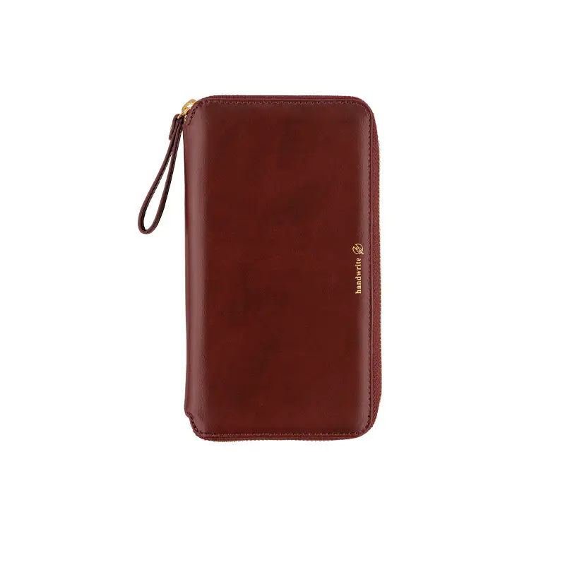 The pen holder is designed to fit the 12.2 mm (0.48") diameter Jetstream pen offered as a free Hobonichi Store Exclusive Bonus. Pens with certain shapes and materials may be difficult to pull through the holder. The holder can fit pens up to 13.5 mm (0.53") in diameter.
