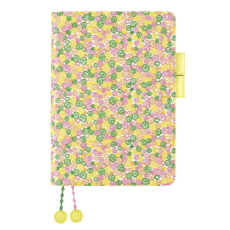 This item is a reimagining of the popular 2014 Hobonichi Techo cover skyful. This time, the color scheme was specifically created for the Hobonichi Techo cover, which depicts a sky full of stars made from colorful, brightly embroidered dots.