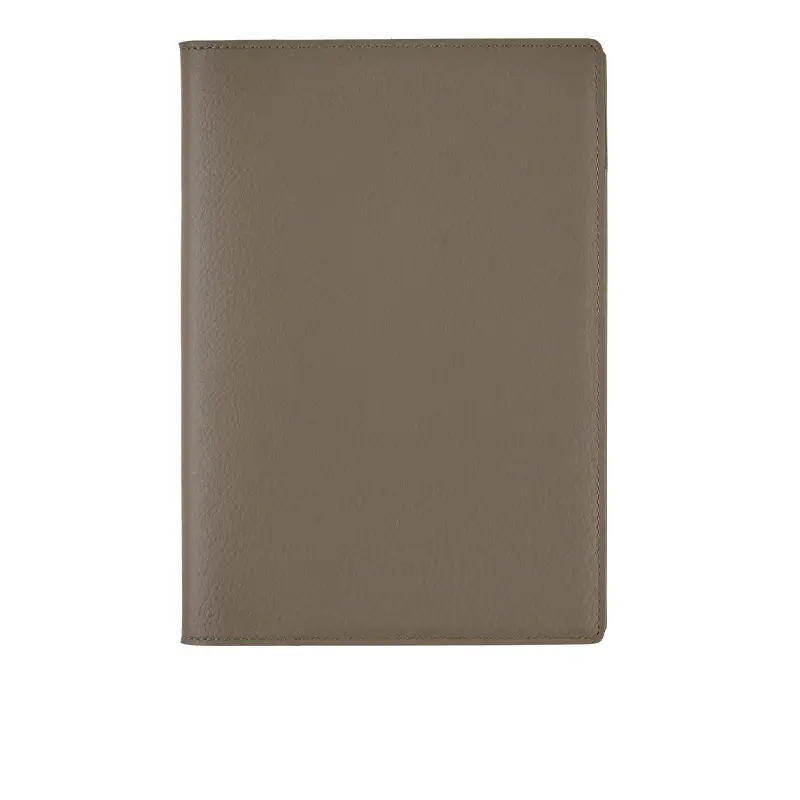 The front of the cover is in a warm gray, while the back is in a cool-toned light blue. A specialized process was used to create this dual-tone on one single piece of leather. The unique sleekness of the leather makes it soft to the touch, and thanks to its finely grained texture, scuff marks will be less visible.