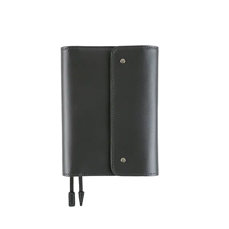In the cover interior, you will find a slit-type pocket, perfect for storing business and other cards. Included is a small bookmark, made with the same leather as the cover and pressed in gold foil with the Hobonichi logo. You can put this between the pages to always find your place.