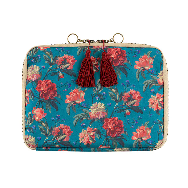 Peacocks of Grantham Hall is a pouch that uses a Liberty Fabrics textile, famous for its beautiful colors and intricate designs. The pattern of peacocks sitting on a lawn was drawn by actor and producer John Malkovich. Peacocks of Grantham Hall was offered as a Weeks cover in the 2016 Hobonichi Techo lineup and was a big hit.