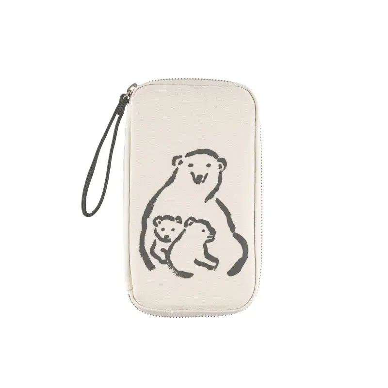 This pouch in the theme My Coffee brings illustrator Yumi Kitagishi’s drawings to life. It depicts a quiet and gentle time of relaxation, with a coffee in one hand as your companion. The black background is studded with colorful illustrations, and the pink binding and zipper pull of the case serve as accents. The interior is also in a pink shade.