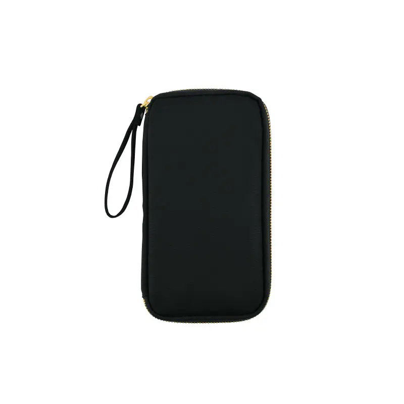 The pouch can hold many items, but its slim size and compact shape make it easy to fit into a purse or bag. A loop-shaped strap has been attached to the zipper to make it easy to hold.