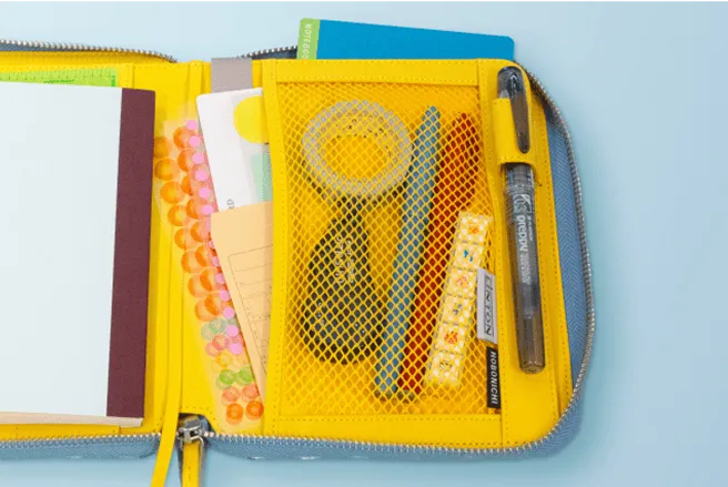 The zipper-type covers allow you to fully enclose your techo with zips. It will protect your techo and also make sure that the contents don’t fall out easily. The charm of this cover type is how much you can store in it, and you can keep stationery such as pens and washi tapes with your techo.
