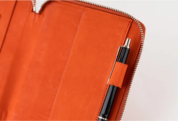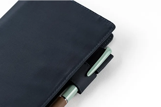 Ever since it first appeared in the 2003 edition lineup, this cover type has been loved by many and is the basic shape of the Hobonichi Techo cover. The main characteristics are the two pen holders that keep the cover shut and the various pockets.