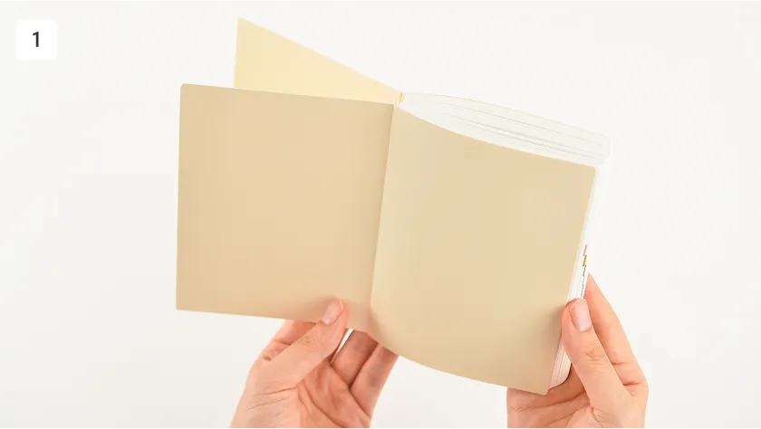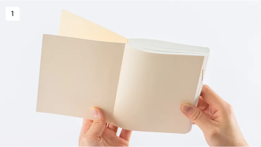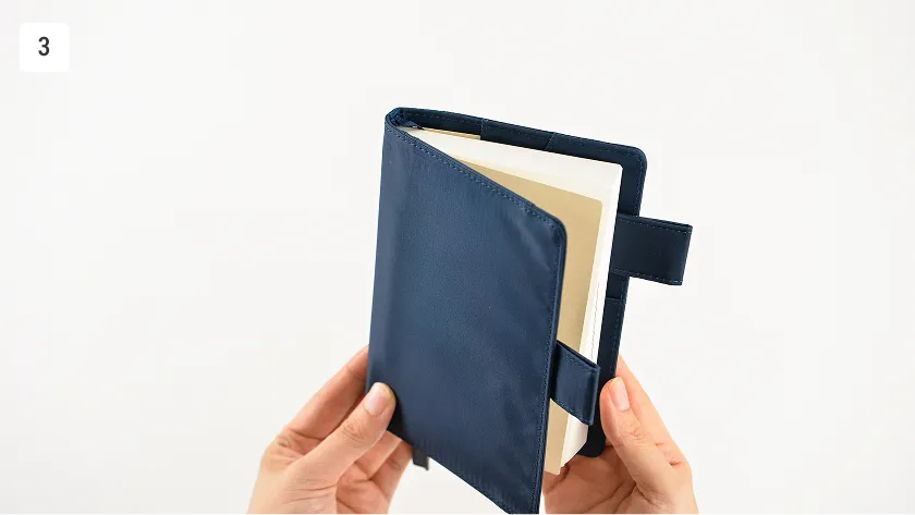 When buying the Hobonichi Techo as a book and cover set, you’ll assemble the set yourself. The cover fits the book quite snugly, but there’s a way to put it on without having to bend your book cover to squeeze it in. See the photographs below for instructions on easily inserting your book into its cover.