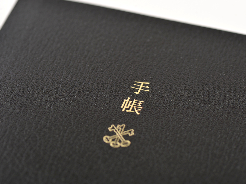 表紙はマットな質感のクロス張りです。漢字の「手帳」の文字と、ARTS&SCIENCEのトレードマークである鍵のマークが箔押しされています。