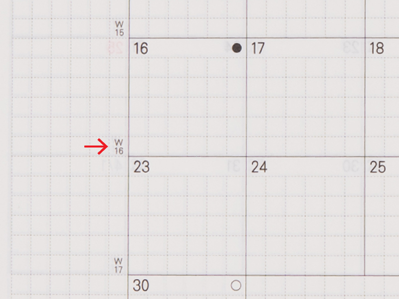 年始から数えて、その週が何週目であるかを表した「週番号」を載せています。※週番号の数え方は「1月の第1木曜日が含まれる週」を「W01」とする方式を採用しています。