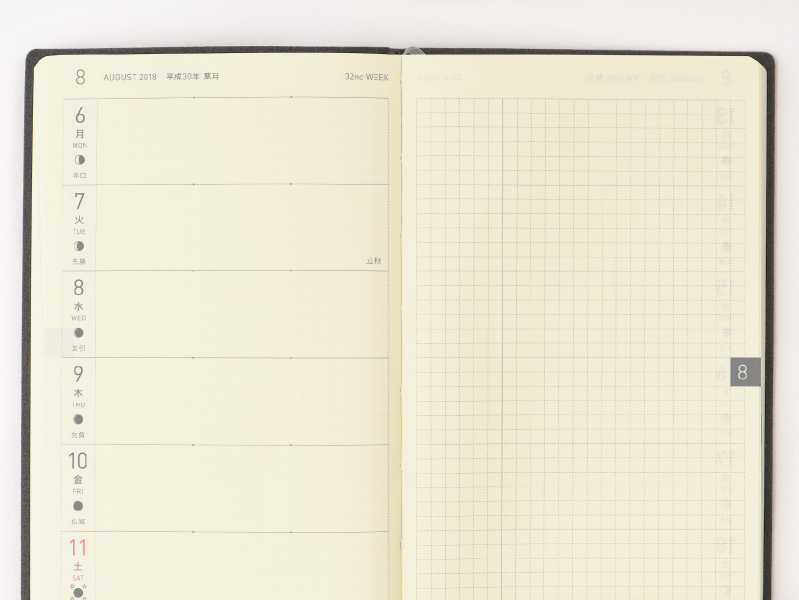 左ページに週間予定、右ページに方眼メモという