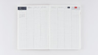 ページ構成:1日ページ/週間ページ/月間ページ/おまけページ総ページ数 544ページ 製本 糸かがり製本 紙質 薄くて軽く、裏抜けも少ないトモエリバー(手帳専用紙) 方眼のサイズ 3.7ミリ方眼 年間カレンダー 2017年、2018年、2019年 年間インデックス 2018年4月〜2019年3月(全4ページ) 月間カレンダー 2018年2月〜2019年5月(全32ページ) 1日ページ 2018年4月1日〜2019年3月31日(全378ページ)