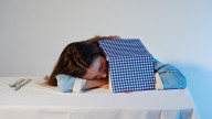 白地にブルーのギンガムチェックがプリントされた