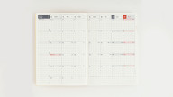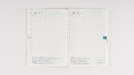 ページ構成:1日ページ/月間ページ/おまけページ総ページ数 240ページ 製本 糸かがり製本 紙質 薄くて軽く、裏抜けも少ないトモエリバー(手帳専用紙) 方眼のサイズ 3.7ミリ *月間ページのみ3.45ミリです。 年間カレンダー 2017年、2018年、2019年 年間インデックス 2018年6月〜2019年5月(全6ページ) 月間カレンダー 2018年6月〜2019年1月(全16ページ) 1日ページ 2018年7月1日〜12月31日(全193ページ)