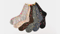 「FLOWER RUG(ブラック)」とおそろいの柄の靴下です。
