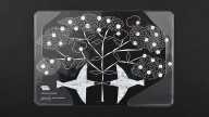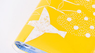 葉や鳥は、どこか幾何学模様のようにも見えます。