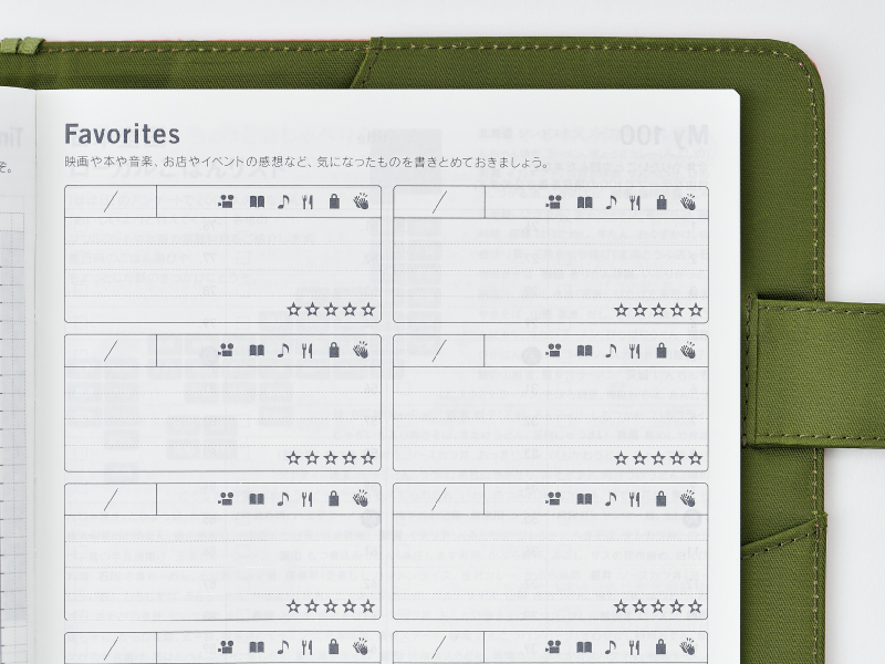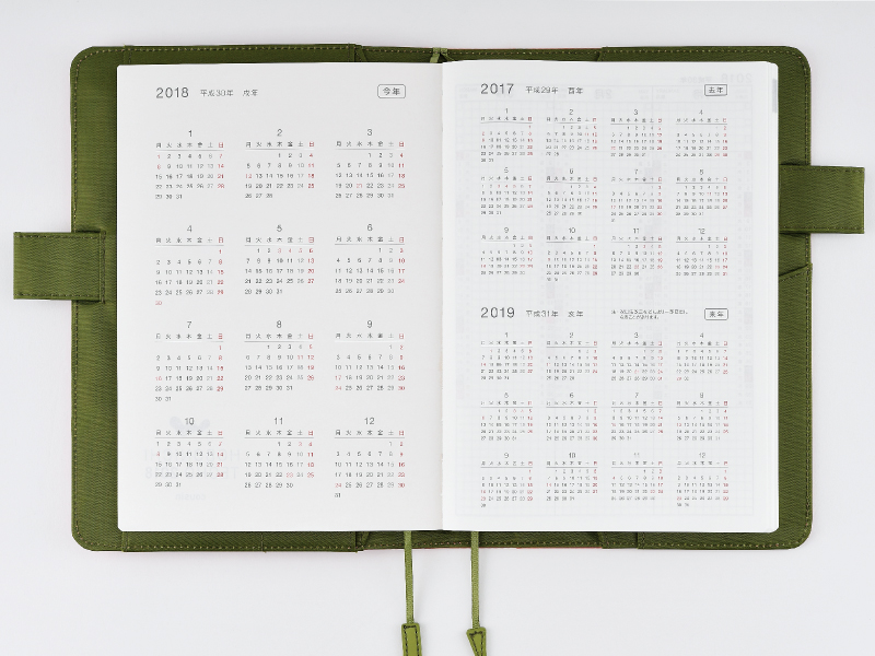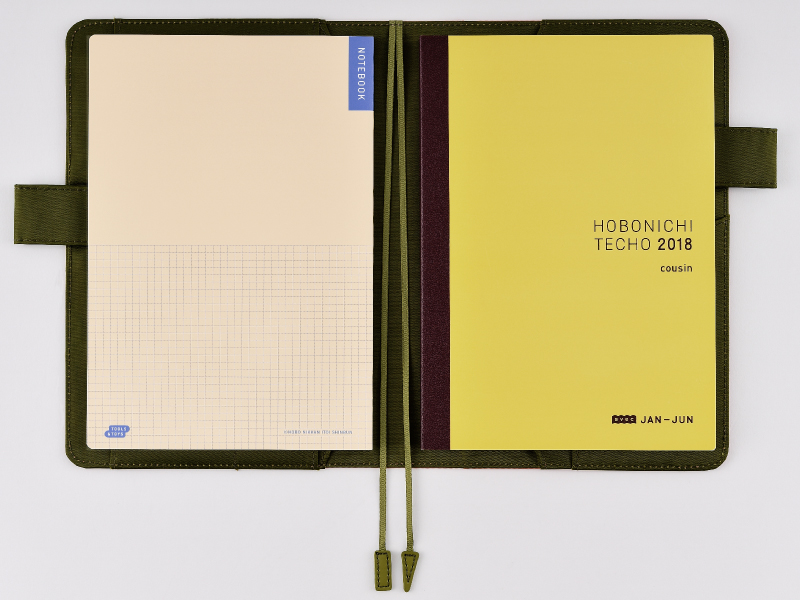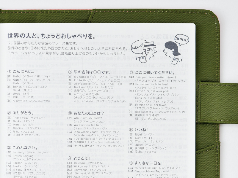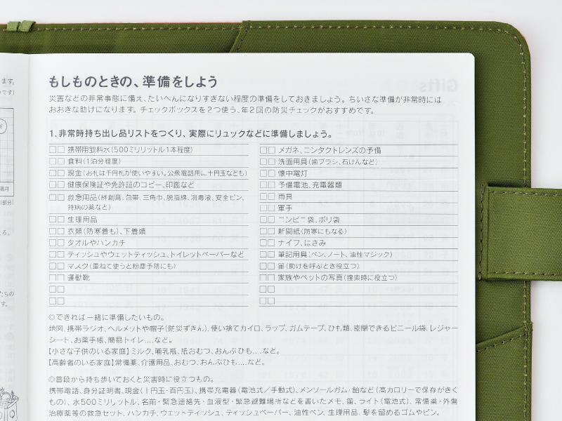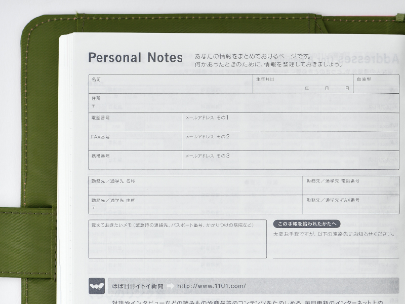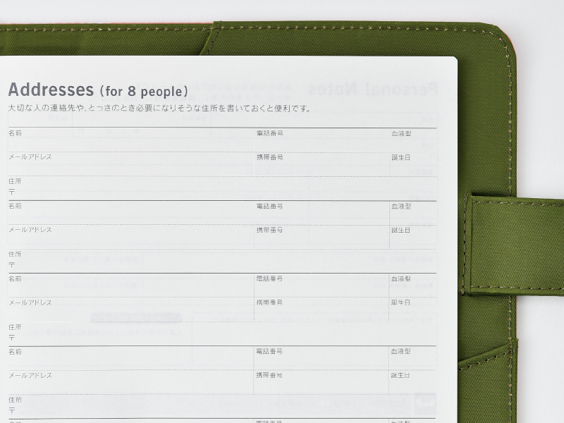 手帳をとじる役目を兼ねたペンホルダーなど、