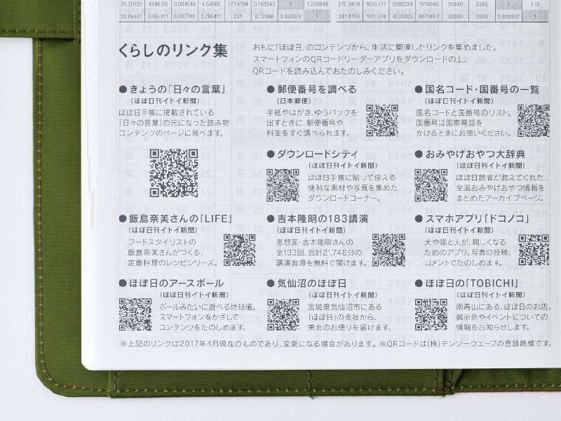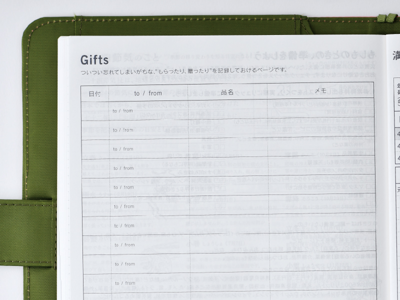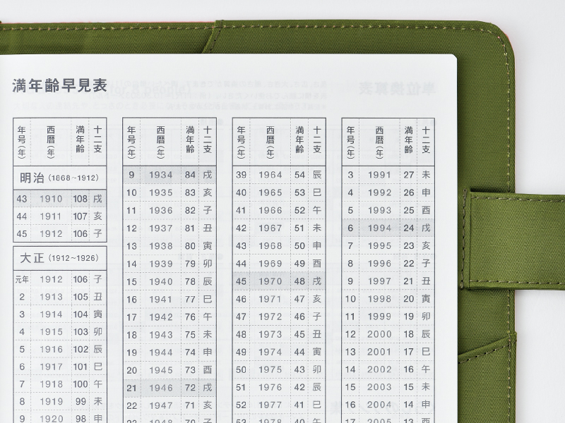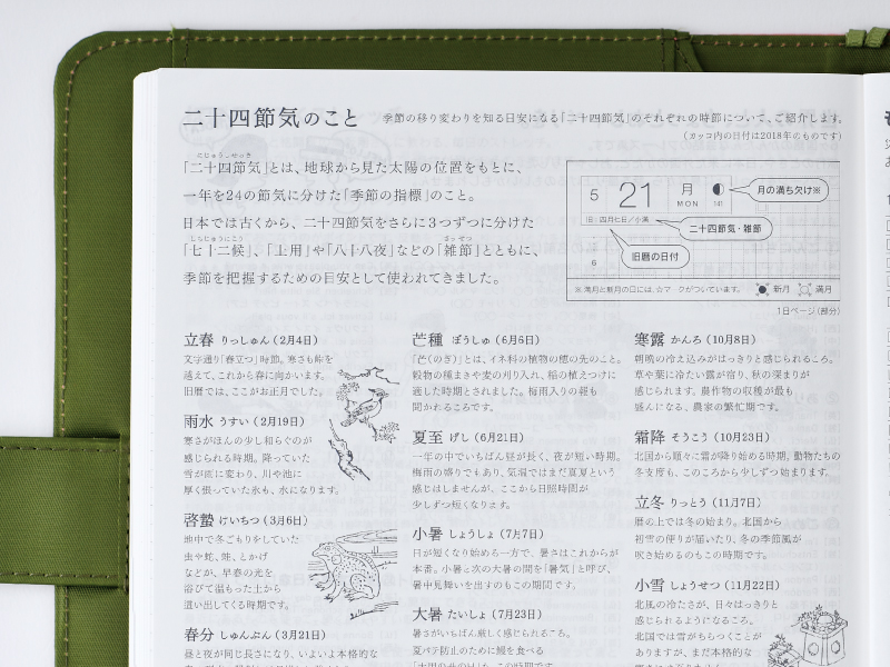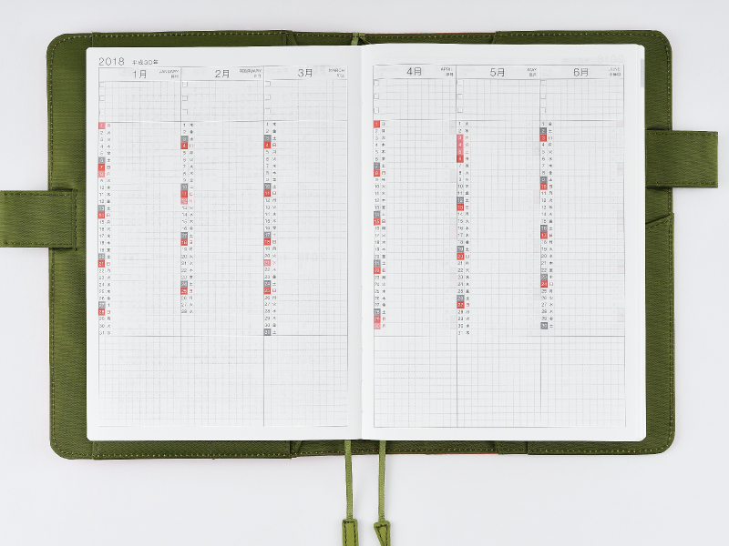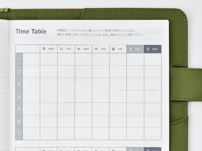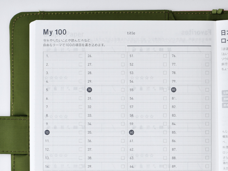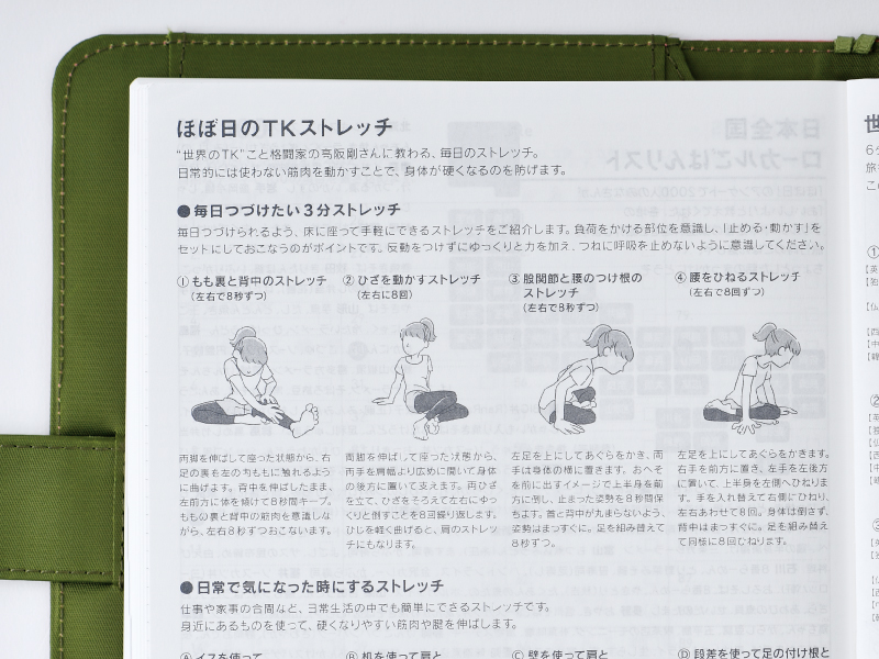 手帳をとじる役目を兼ねたペンホルダーなど、
