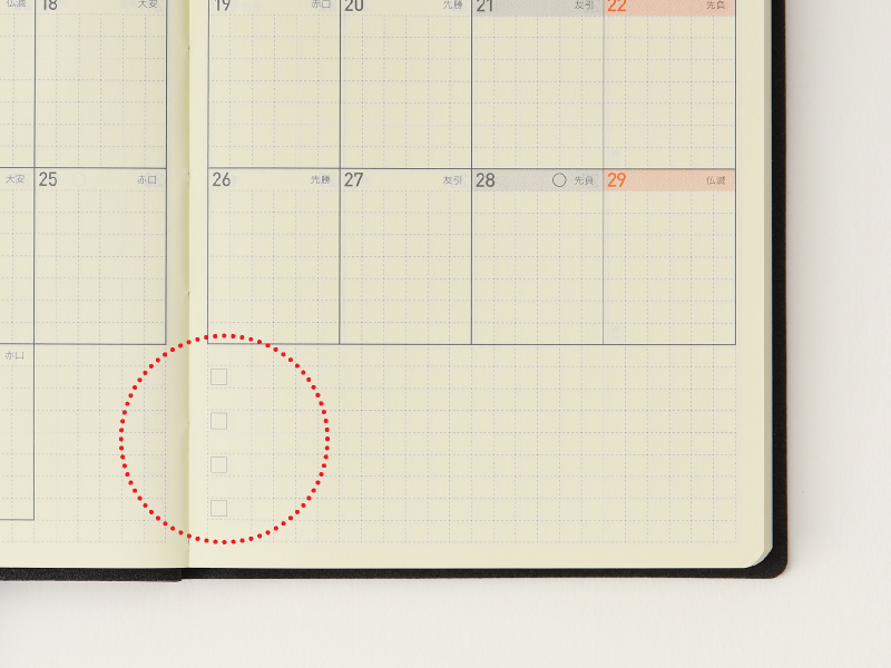 左ページに週間予定、右ページに方眼メモという