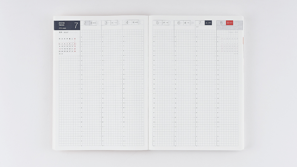 - 日番号/週番号(月間カレンダーに記載)/旧暦/六曜(大安、仏滅など)(月間カレンダーに記載)/二十四節気(立春、春分、夏至など)、雑節/祝日、記念日など(バレンタインデー、ひなまつり、母の日、父の日など)/月の満ち欠け(1日ページ全ページに記載、月間カレンダーに満月と新月のみ記載)