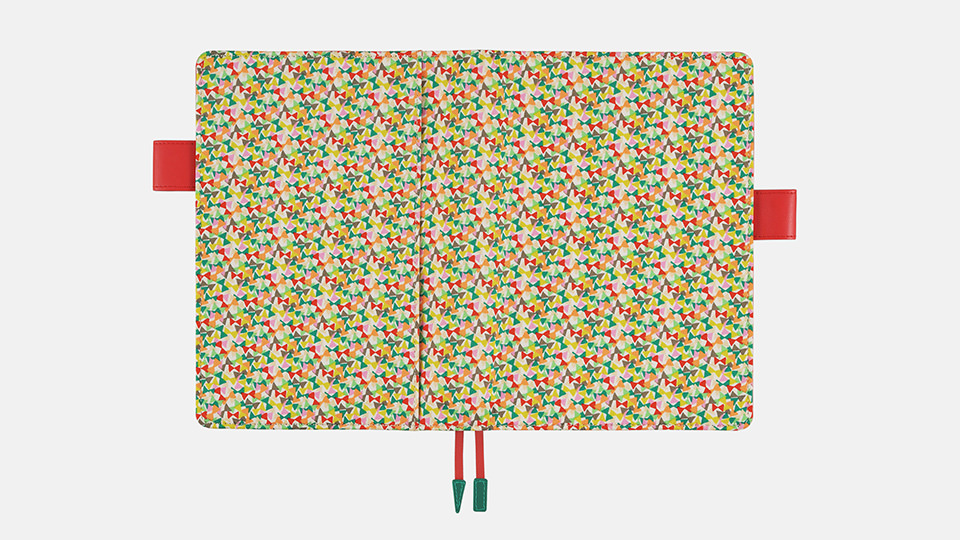 カバーの内側としおりひもは、あざやかな赤。