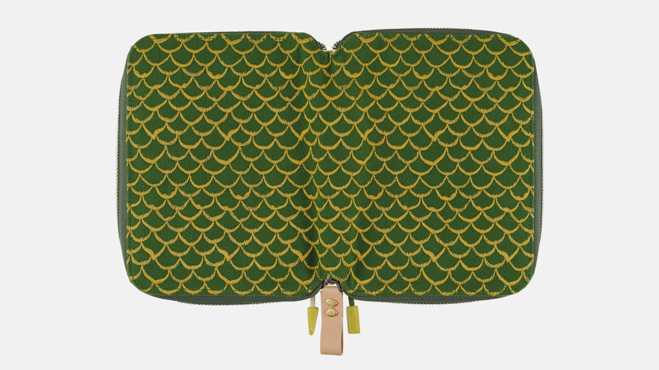 刺繍部分の縫製は、厚みの段差があるため多少蛇行する場合がございます。あらかじめご了承ください。