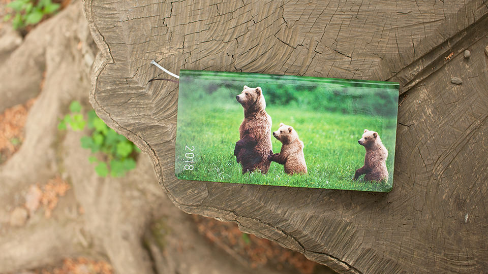 「グリズリーの親子」は、アラスカの緑豊かな草原に、