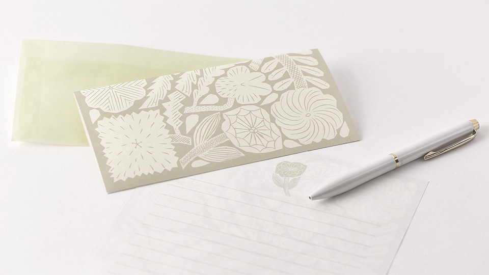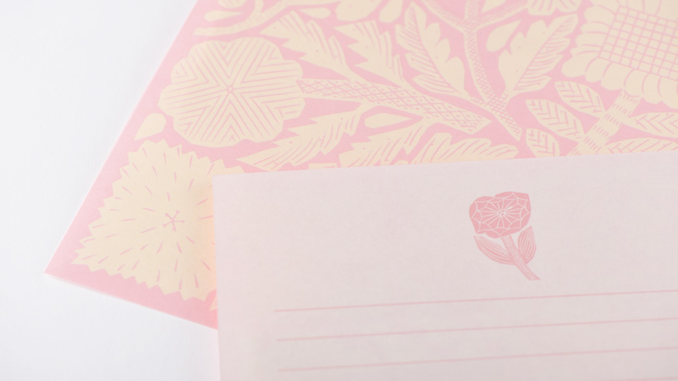 便箋の外側には鹿児島さんの花の図案が、