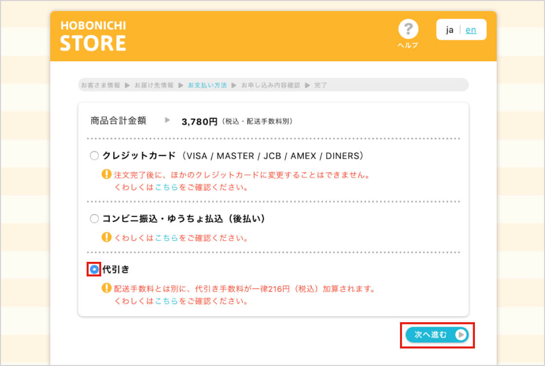 「ほぼ日ストアヘルプ お申込し込みの流れ」から