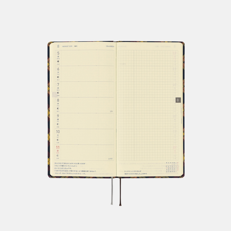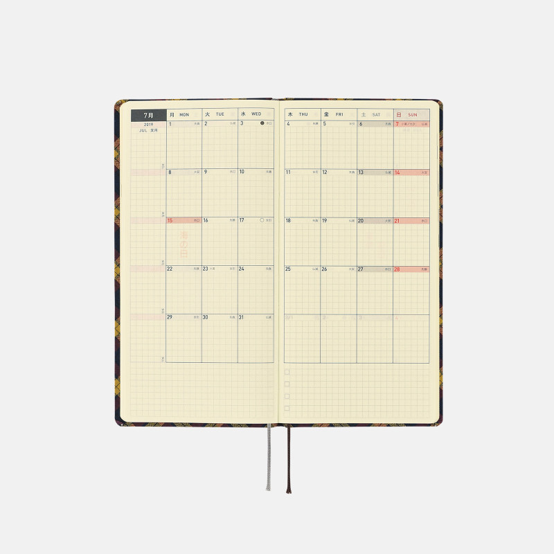 | 基本仕様 | 掲載期間:2019年4月~2020年3月 週の区切り:月曜はじまり ページ構成:週間ページ/月間ページ/おまけページ |