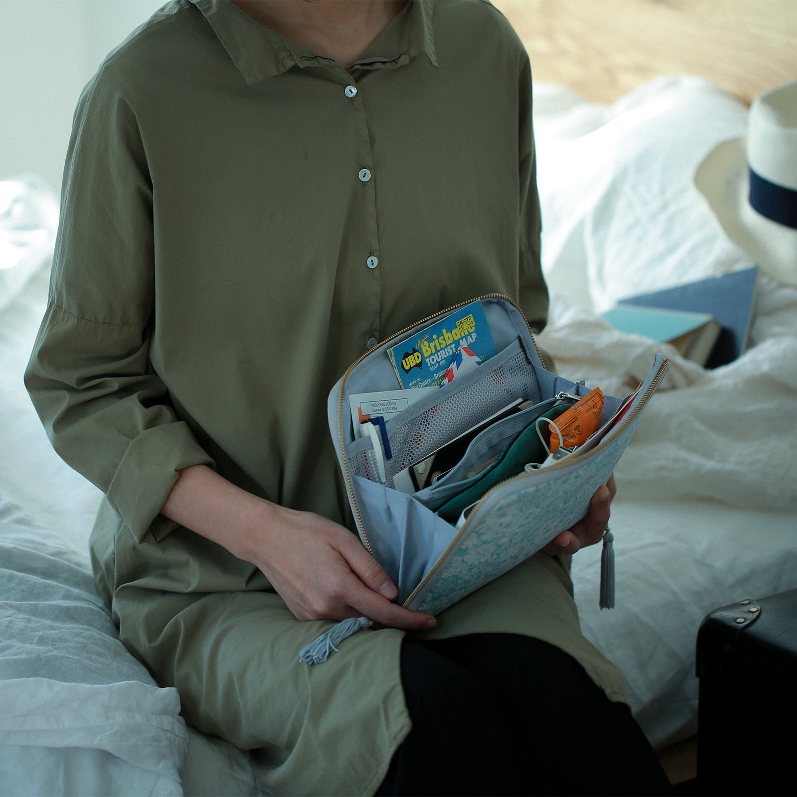 タッセルを引っ張らないようにしてください。取れたり、破損する場合がございます。またファスナーにからまないようご注意ください。
