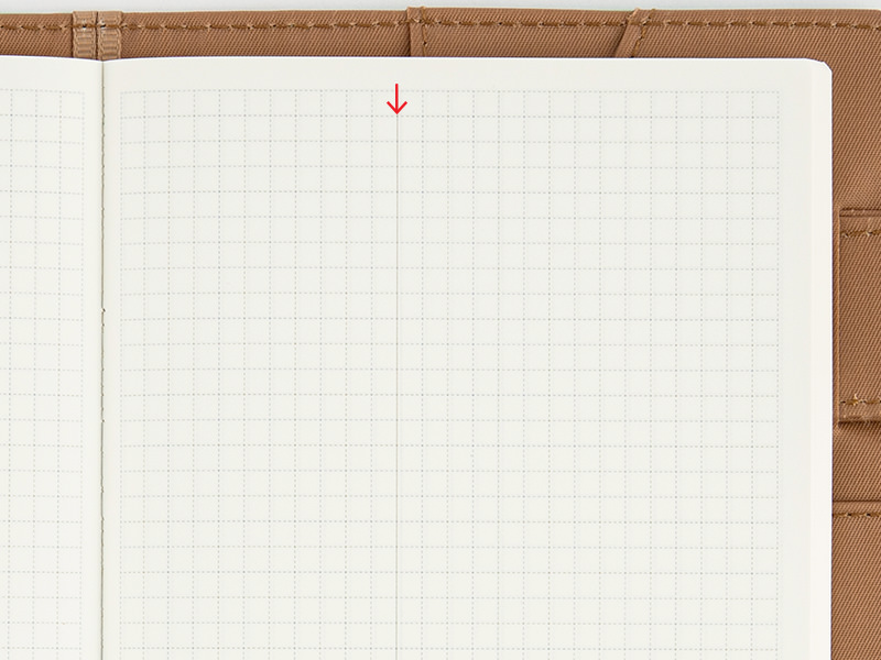 「左側に見出し/右側に詳しい内容」といった、ページの書き分けに役立つラインです。使用しないときにも邪魔にならないちょうどいい線の濃さがポイントです。オリジナルやカズンの「1日ページ」の「秘密の縦ライン」と同じ位置に配置しています。