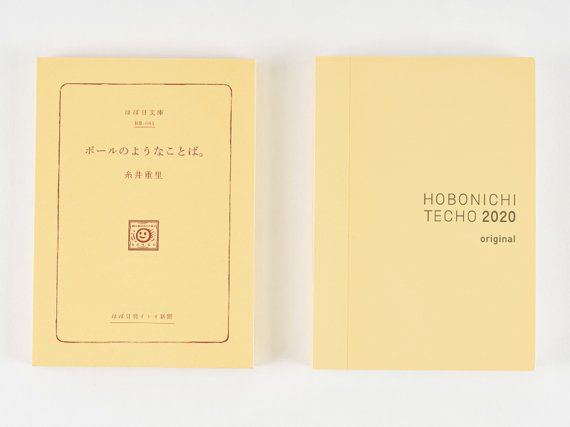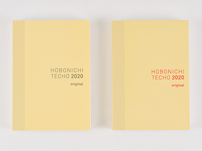 表紙の色は、やさしい色合いのアイボリー。月曜はじまりは「グレー」、日曜はじまりは「レッド」で「HOBONICHI TECHO 2020 original」と印字しています。(4月はじまり版には「spring」という表記が追記されています)