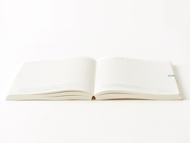 「糸かがり製本」という綴じ方を採用。手で押さえなくてもフラットに180度開きます。
