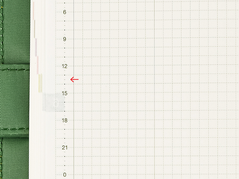 1ヵ月ごとに異なる色で辞書のようなツメをつけています。書くときや読み返すとき、目的のページにたどりつきやすくなっています。