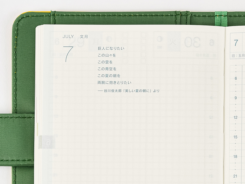 各月のあたまに用意したメモスペースです。文学作品や詩歌から抜き出した「月の言葉」を、毎月ひとつずつ掲載しています。