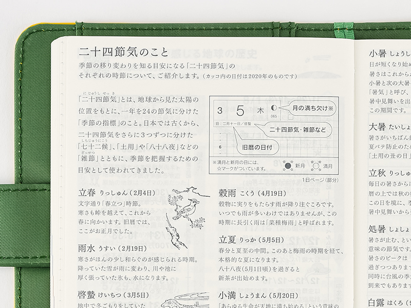 「立春」や「冬至」など、季節の移り変わりを知る目安になる「二十四節気」について解説しています。
