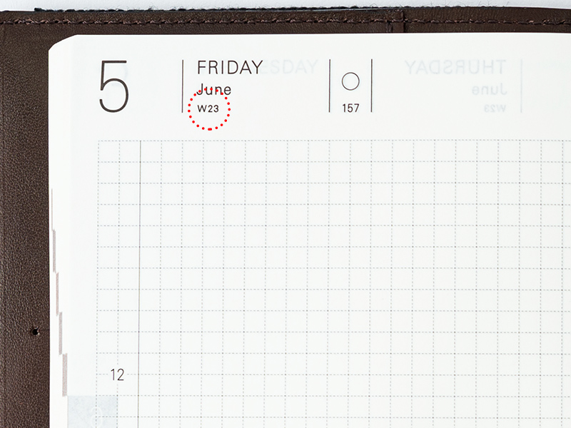 海外で広く使われる週番号を表示しました。年始から数えて、その週が何週目であるかを表しています。※週番号の数え方は「1月の第1木曜日が含まれる週」を「W01」とする方式を採用しています。