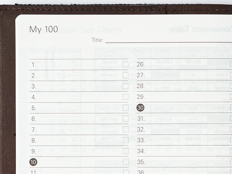 1年でやりたいことや読んだ本、見た映画など、自由なテーマで100の項目を書き込めます。