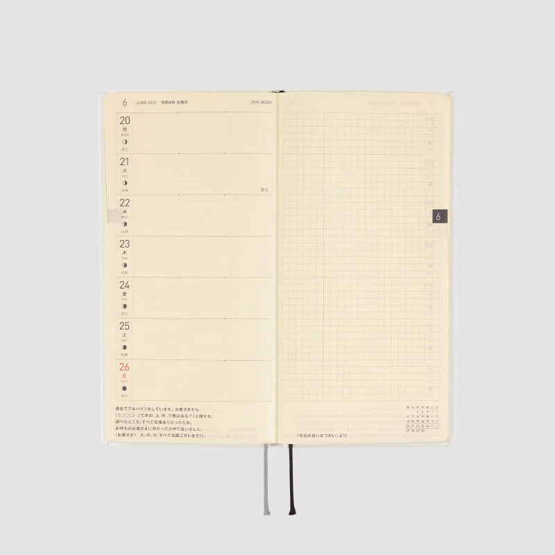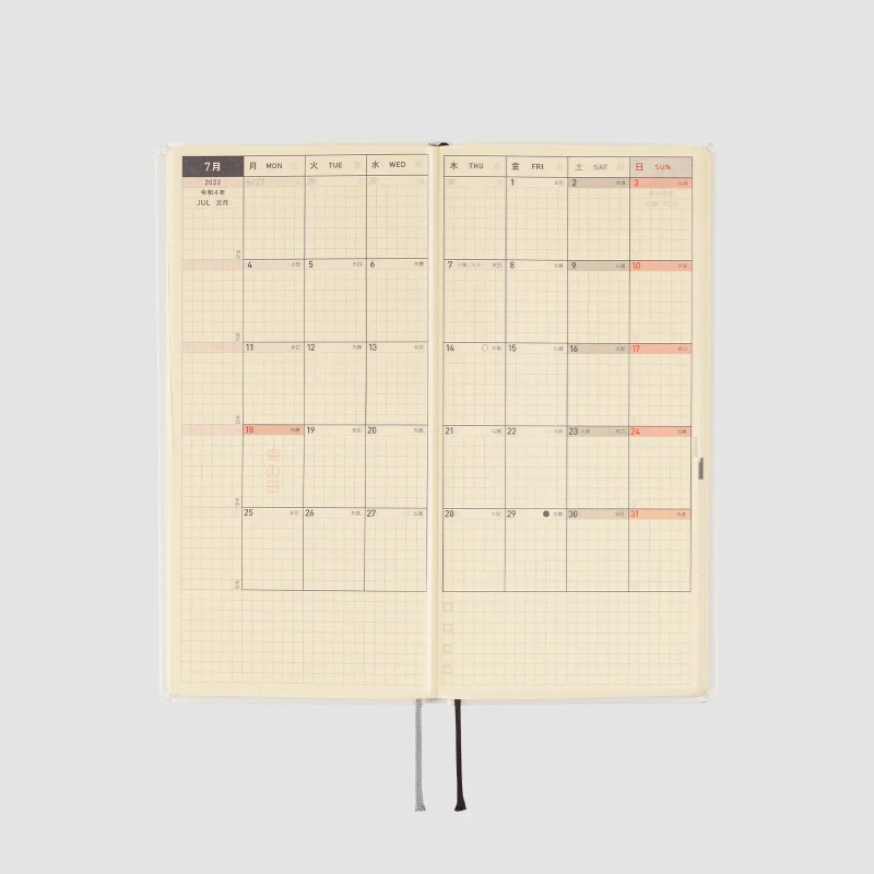 | 紙質・製本 | 薄くて軽く、裏抜けの少ないトモエリバー(手帳専用紙)/糸かがり製本 |