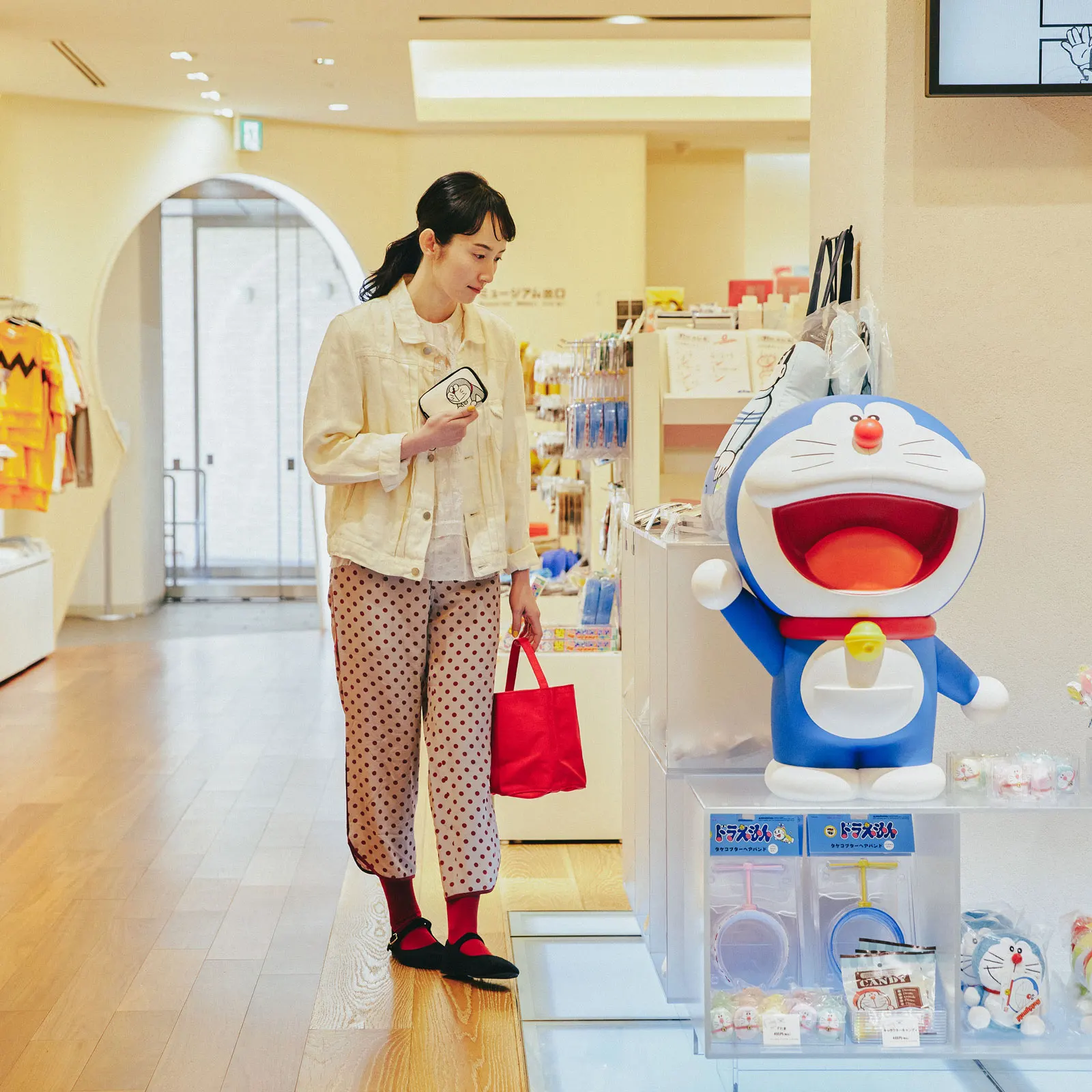 ポーチを開くと、内側は鮮やかなドラえもんカラー。