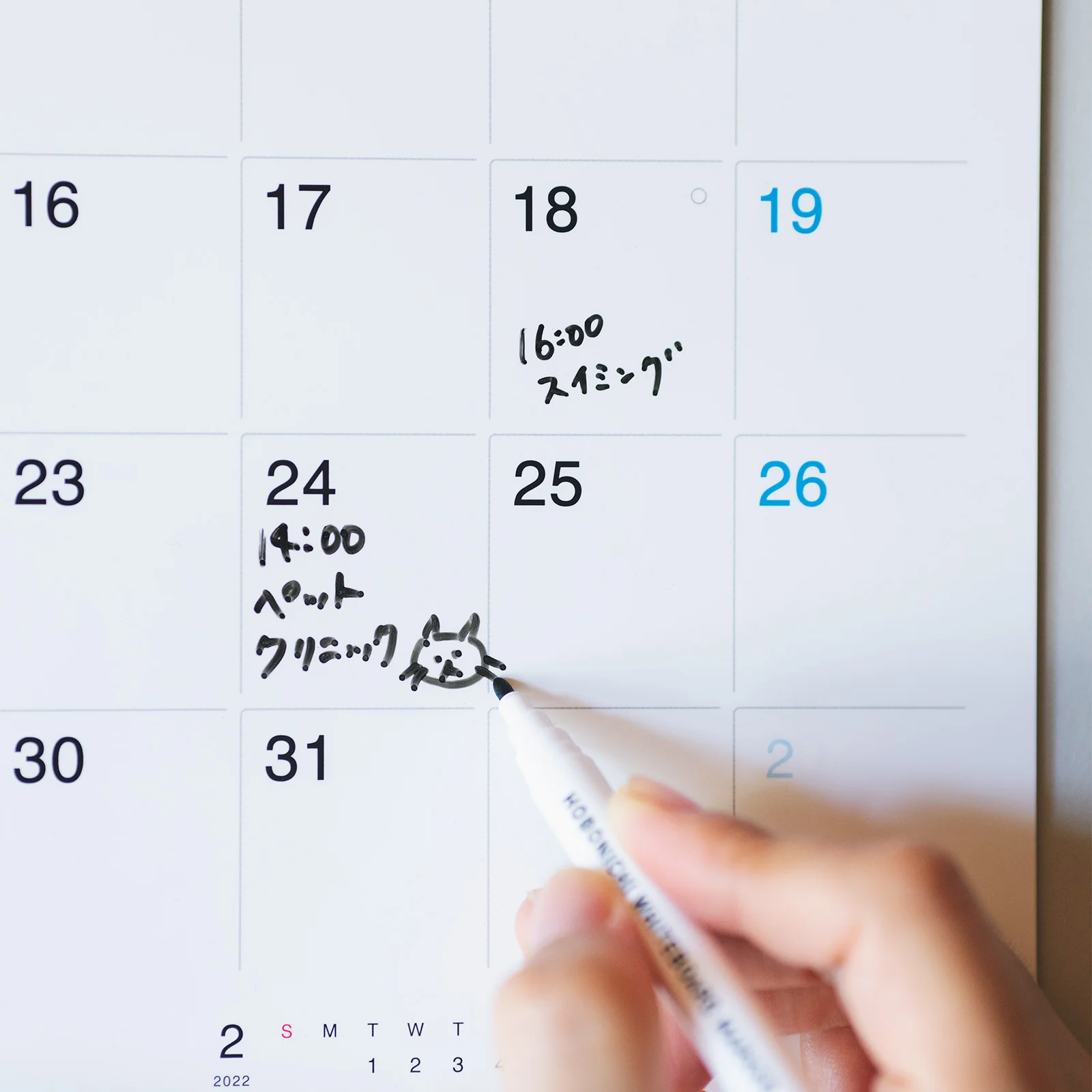 お誕生日や記念日など、消したくない事柄については、油性インクのペンでご記入すると便利です!