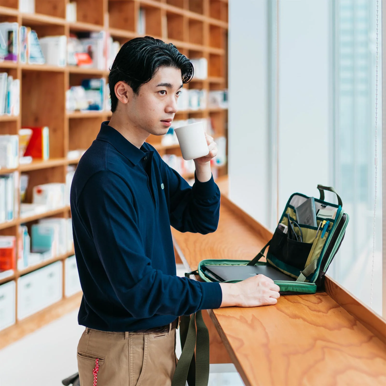 B JIRUSHI YOSHIDA×PORTER×HOBONICHIマルチPCバッグ(グリーンミックス)「ほぼ日」と「B JIRUSHI YOSHIDA」が
