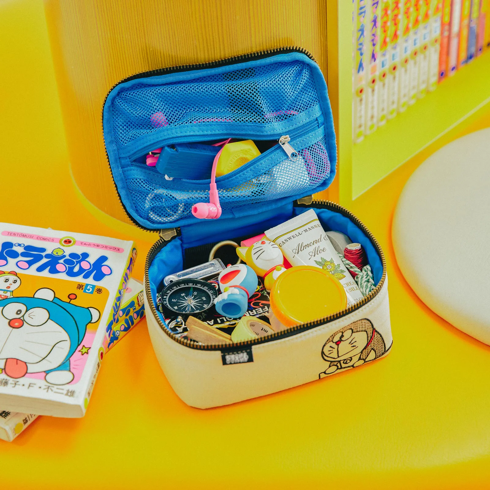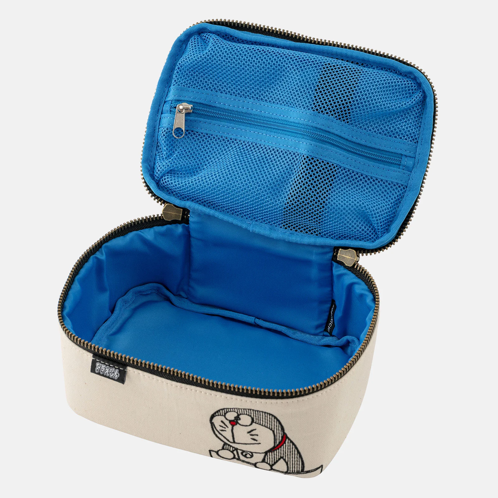 ポーチを開くと、内側は鮮やかなドラえもんカラー。