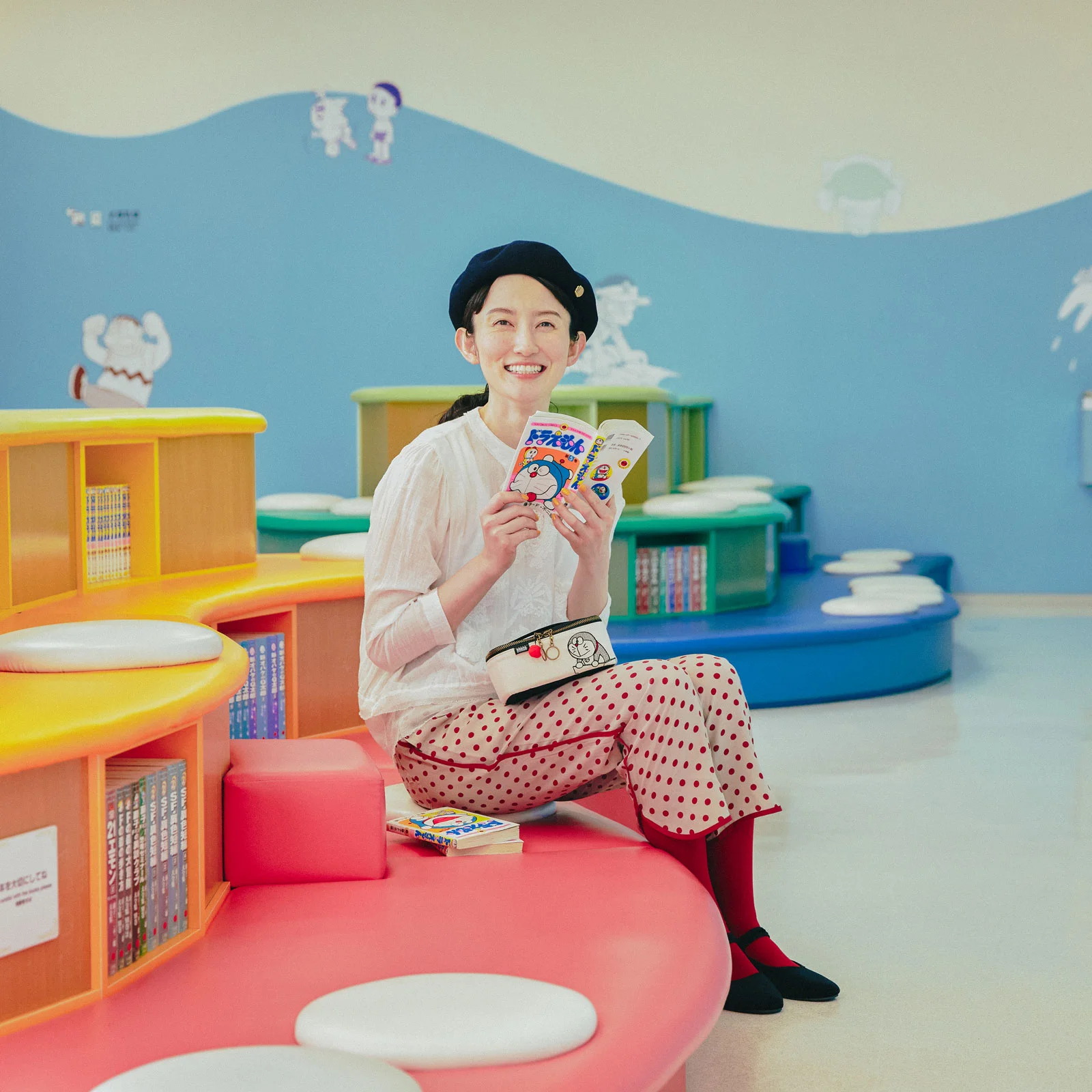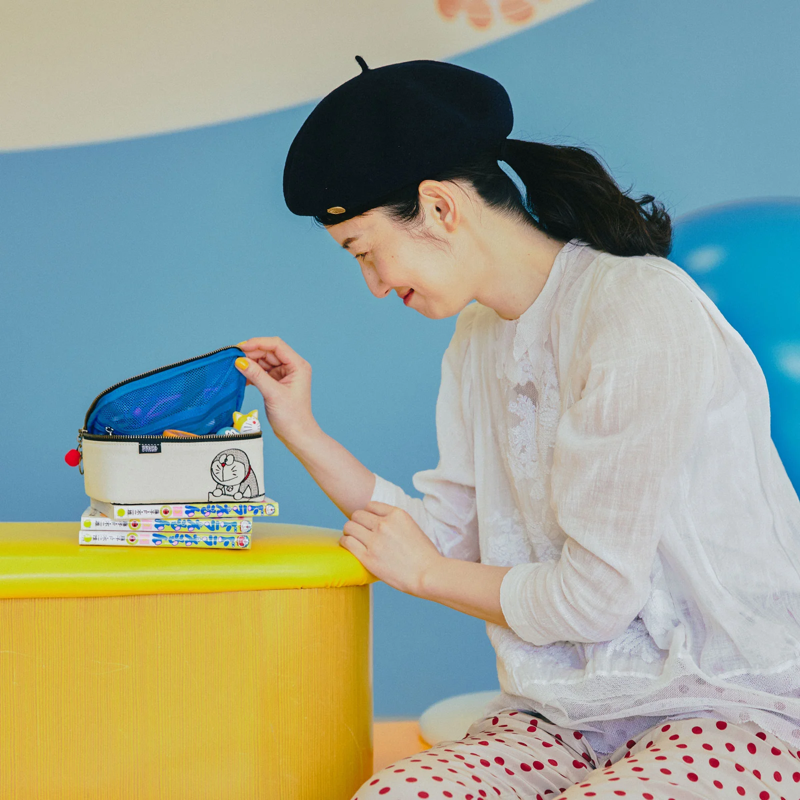 このポーチでは、まんがの中でドラえもんが