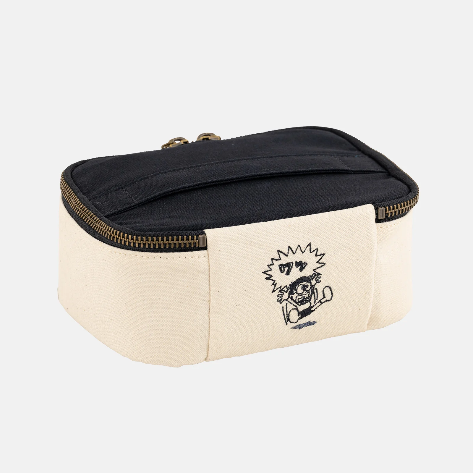 外側はシンプルな生成りと黒の帆布素材ですが