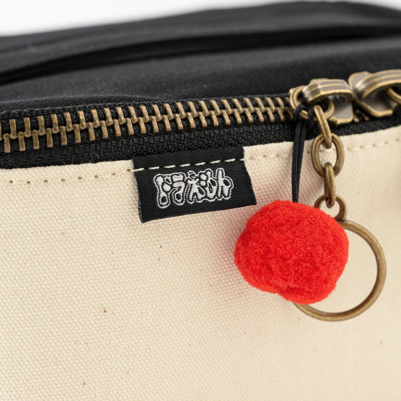 ファスナー部分に付いている赤いチャームを引っ張らないようにしてください。取れたり、破損する場合がございます。また、ファスナーにからまないようご注意ください。