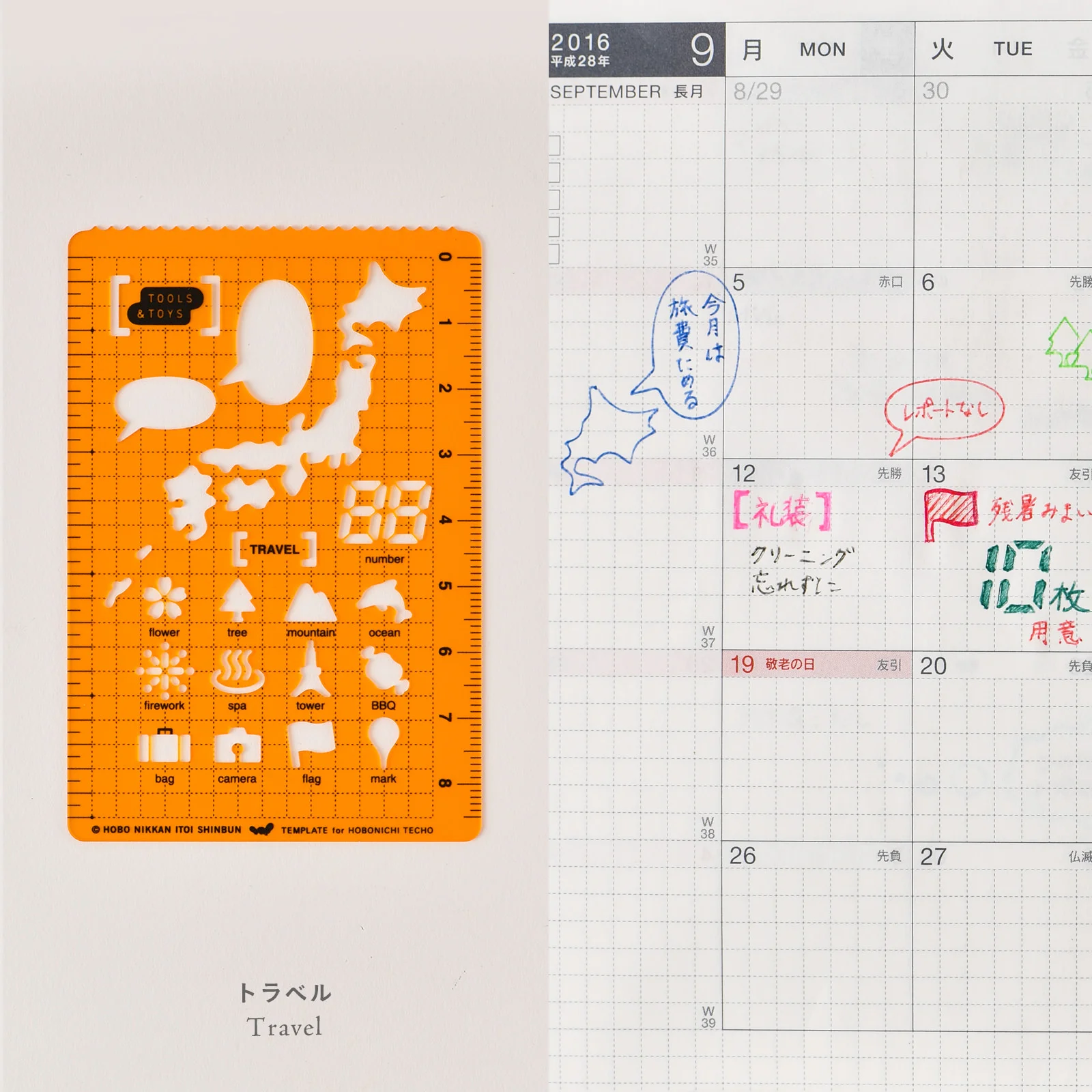 そのため「ベーシック」にある、方眼に合わせて四角が7つ並んだ 「TO DOリスト」用の記号などは、weeksの月間カレンダー(3.55ミリ)、weeksのメモページ(3.55ミリ)、オリジナルの月間カレンダー(3.45ミリ)で使用すると、若干ずれてしまいます。