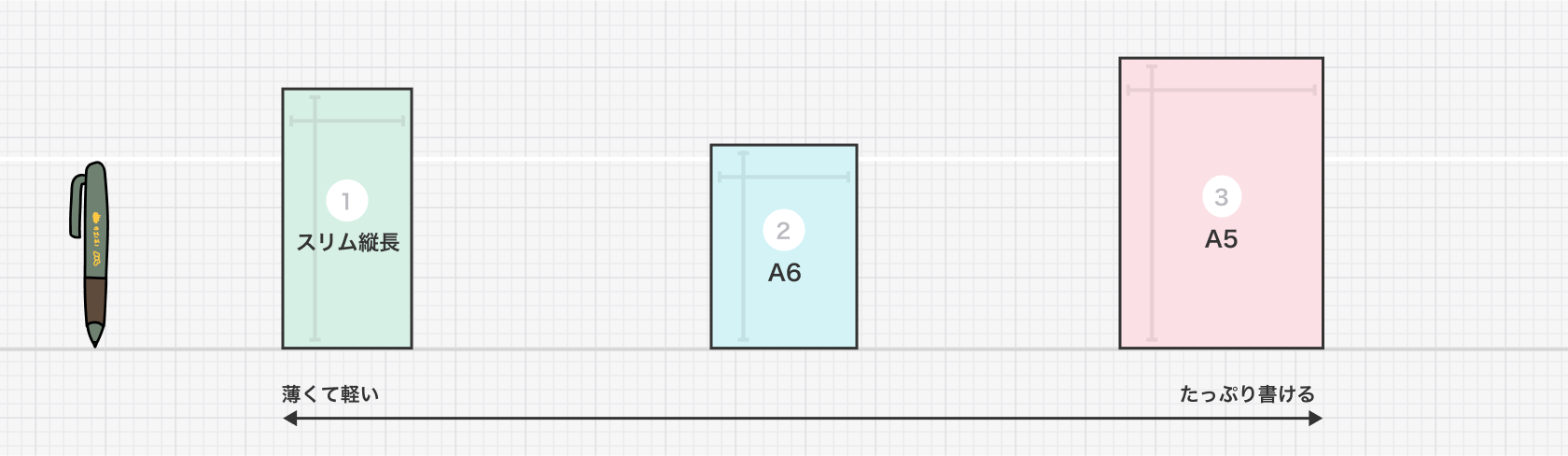 さまざまな種類のある、ほぼ日手帳。サイズ、フォーマット、シリーズ別でさがして選んでぴったりの1冊をみつけてくださいね。