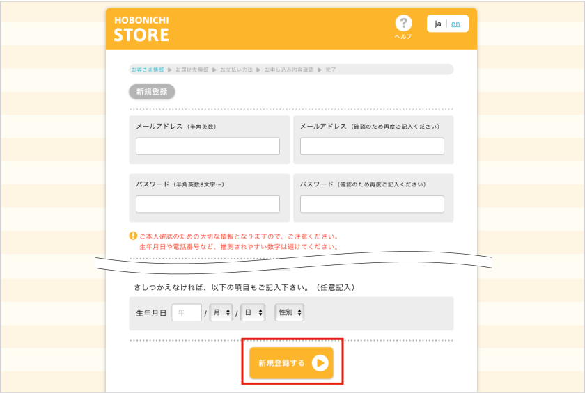 ※「ほぼ日ストア」は、はじめてのお買いものの際に