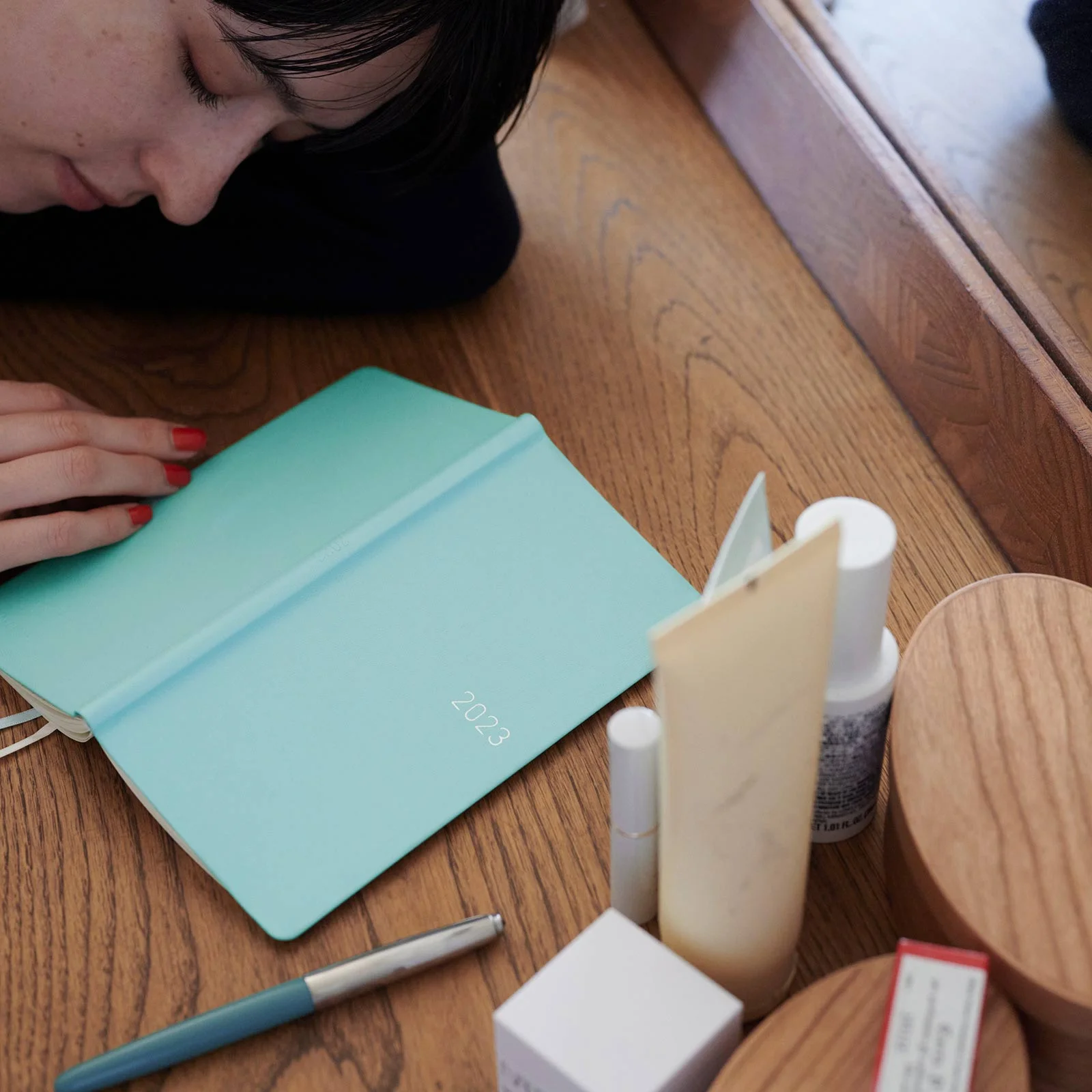クラシカルな革張りの手帳に、
