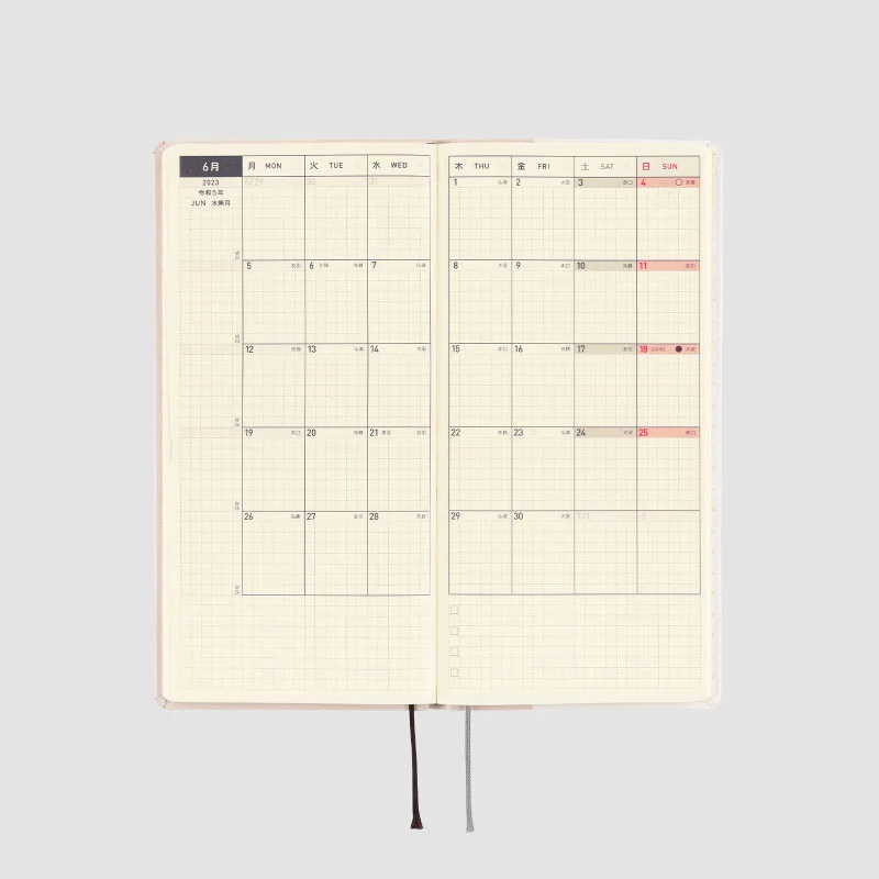 | 紙質・製本 | 薄くて軽く、裏抜けの少ないトモエリバー(手帳専用紙)/糸かがり製本 |